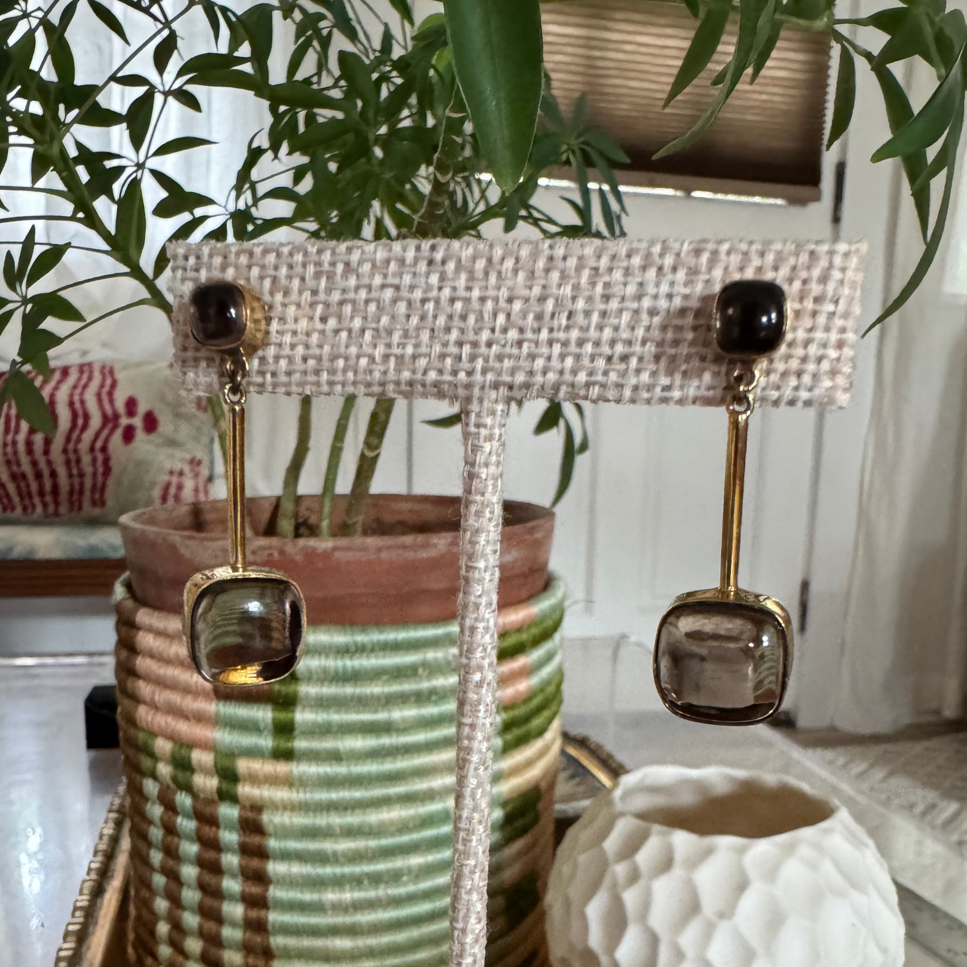 Cushion cut Smoky Quartz stones set in 18k gold plated perfection.