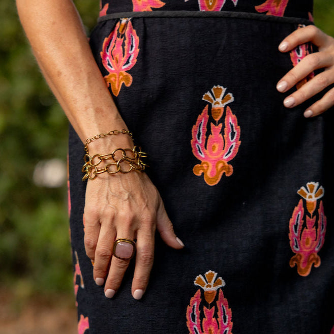 Rose Quartz Cocktail Ring set in square 18k gold plated brass